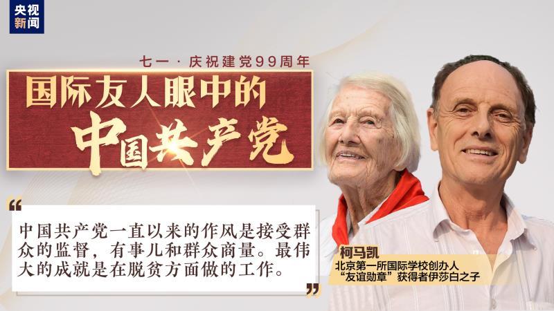 伊莎白曾經表示:“我非常幸運,見證了這個偉大的時代。”新中國成立前中國連年戰爭不斷,正是中國共產黨為中國帶來了和平。伊莎白之子柯馬凱接受央視新聞記者采訪時表示,自己在中國生活多年,見證了中國近70年的偉大變遷,認為中國共產黨最大的特色是代表人民利益,有事兒和群眾商量。中國共產黨最偉大的成就是讓數億人民擺脫貧困。這與西方政黨熱衷將精力金錢投入競選明顯不同。